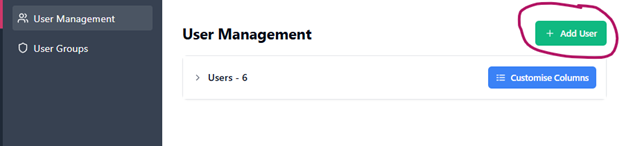 - Click on User Management > Add User on the top right corner