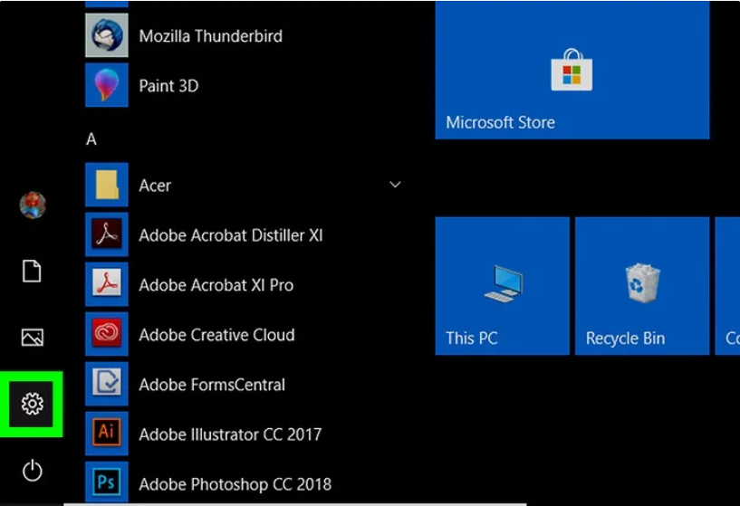 Klik Settings. Klik ikon berbentuk gear di sebelah kiri bawah Start window.