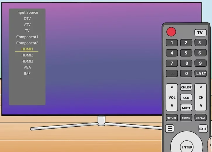 Gunakan alat kawalan jauh TV untuk memilih sumber HDMI pada TV.